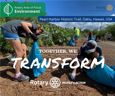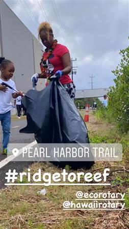 The Rotary Club of Hickam Pearl Harbor participated in the District's 2nd Annual Ridge to Reef clean up on Saturday, April 23, 2022 by joining the City's semi-annual Pearl Harbor Heritage Trail (Pearl Harbor Bike Path) cleanup.